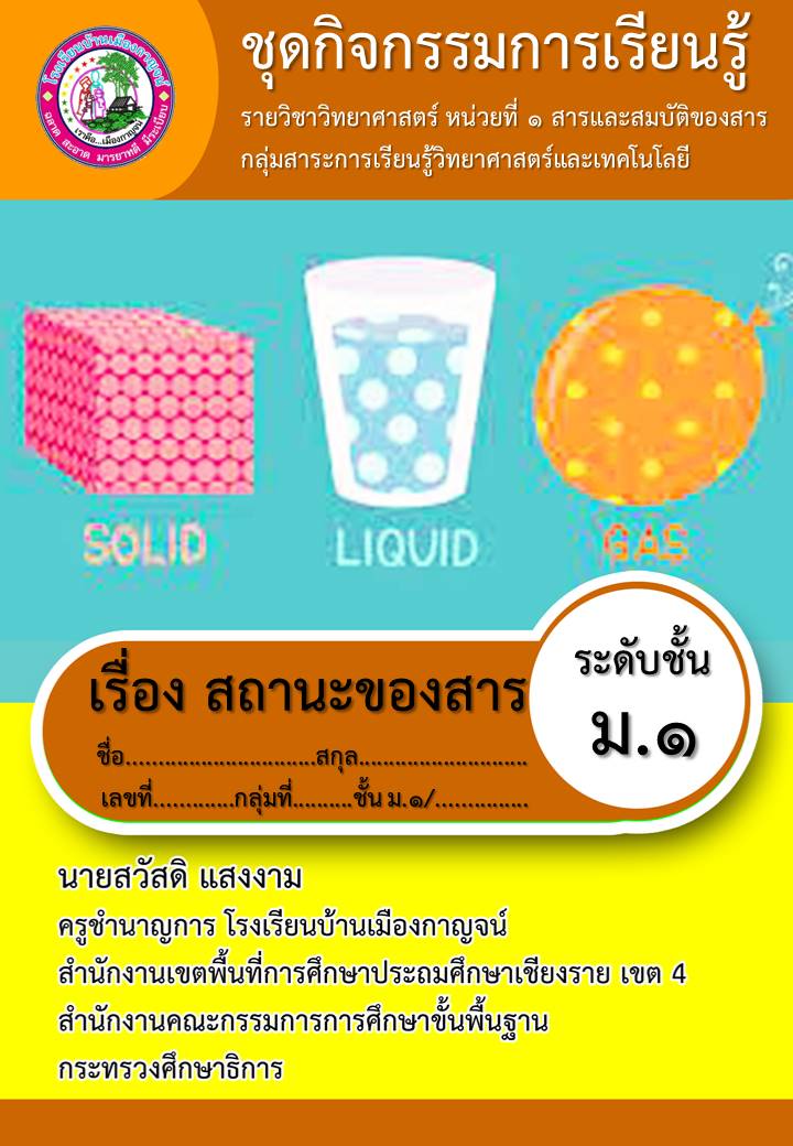 สื่อการสอน ชุดกิจกรรมการเรียนรู้วิทยาศาสตร์ เรื่อง สถานะของสาร โดย นายสวัสดิ แสงงาม